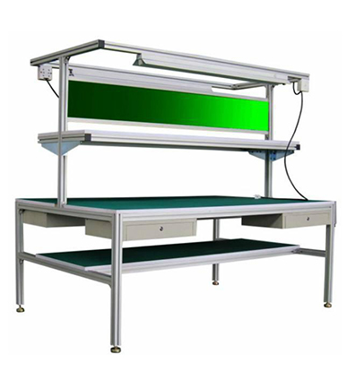 配置: 支架為40×40×1mm厚鋁型材,具有防水、耐磨、耐高溫功能 表面桌面為綠色防靜電貼面,四周使用高強(qiáng)度塑膠包邊。